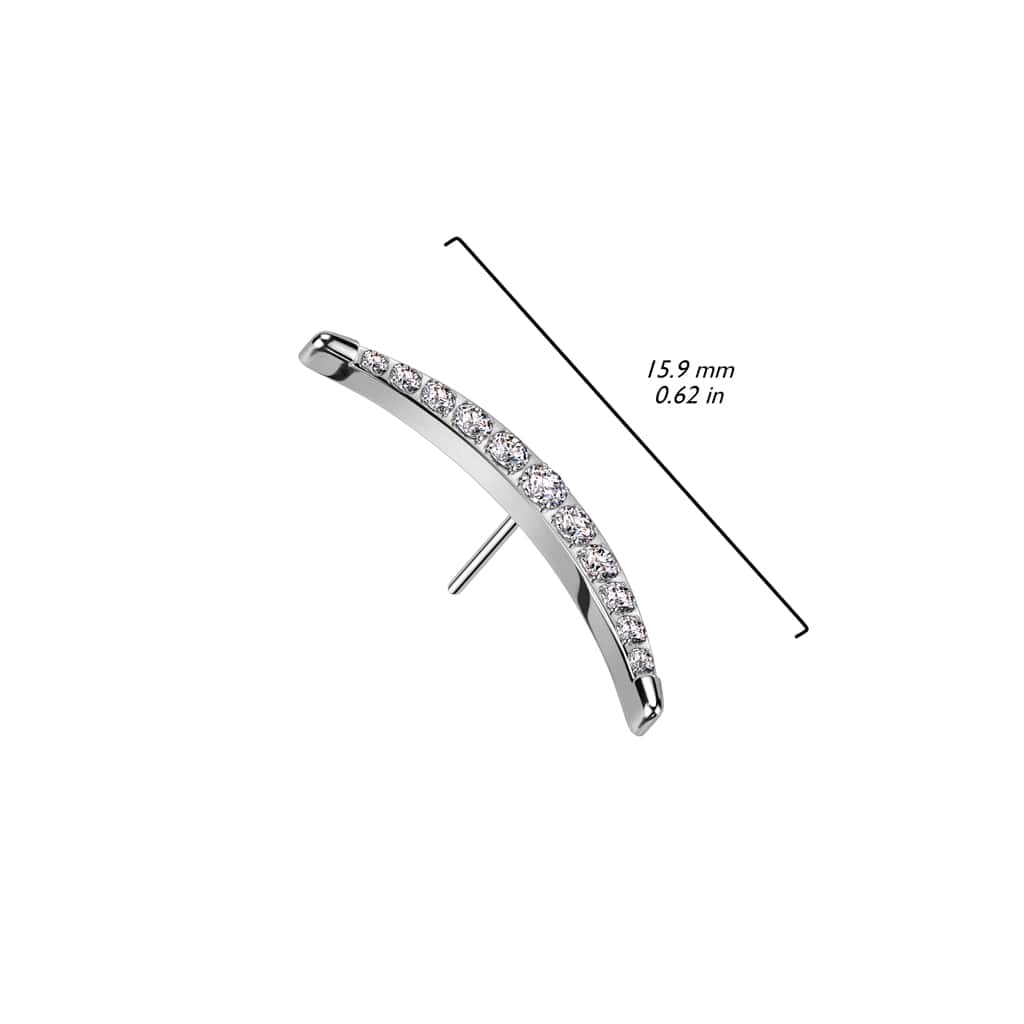 Perfect for threadless labrets or barbells. Experience ultimate comfort and style with our Studded New Moon Titanium Threadless Top! Made with hypoallergenic material, this lightweight top features a secure threadless lock, perfect for helix piercings. Elevate your look with a touch of elegance and practicality.