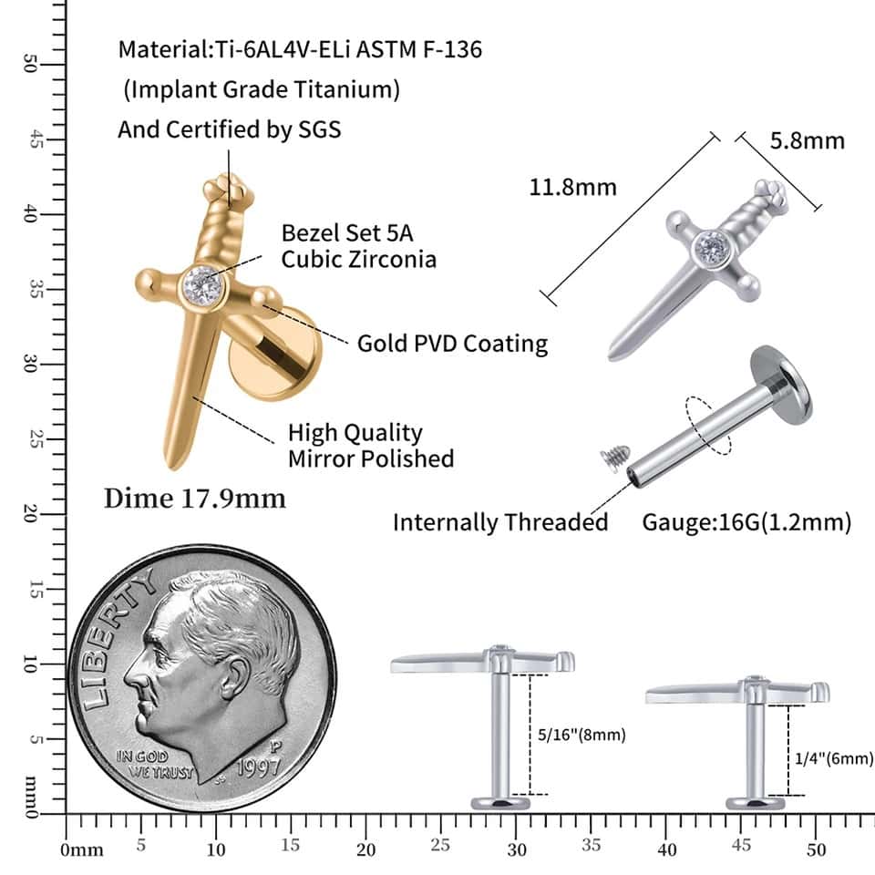 Add a timeless touch to your look with this unique Titanium Dagger Labret! Lightweight and hypoallergenic, this earring is the perfect way to express your style without the fear of allergies or weight. Show off your trend-setting side with this fashionable take on a classic piece!